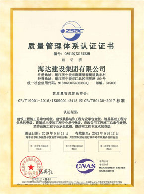 质量管理体系认证证书