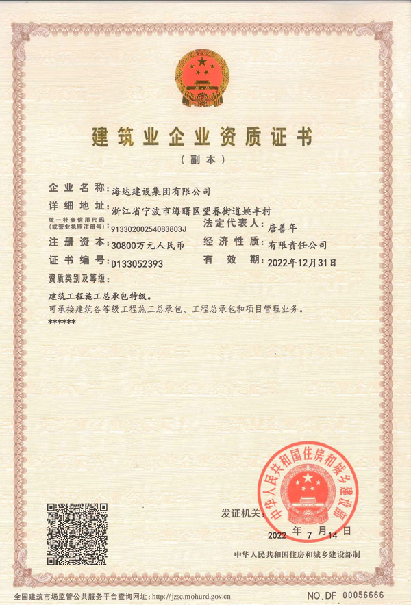 建筑业企业资质证书